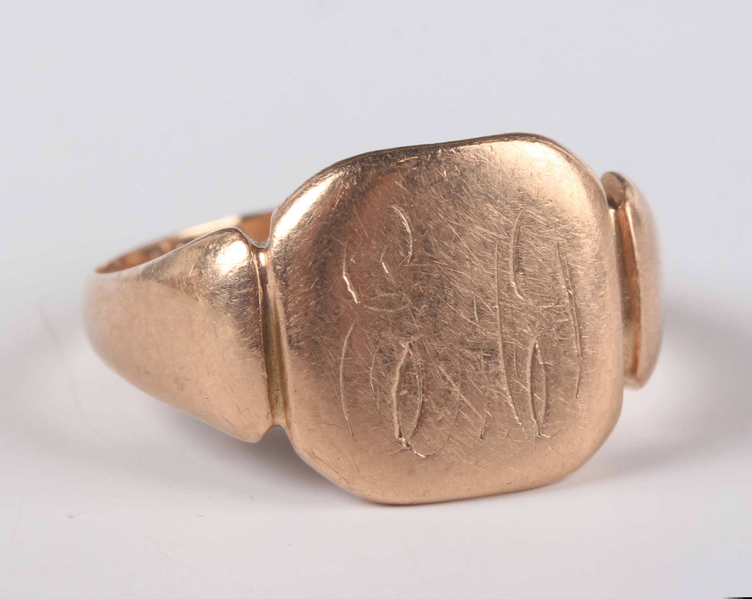 A 9ct gold signet ring, engraved with initials, weight 3.3g, ring size approx K.