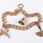 A gold twin curblink bracelet, fitted with three 9ct gold charms, comprising a bell, a coin holder and a pony, on a boltring clasp, weight 16.3g, length 18cm, with a case.