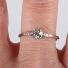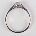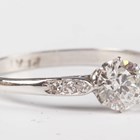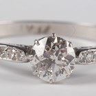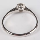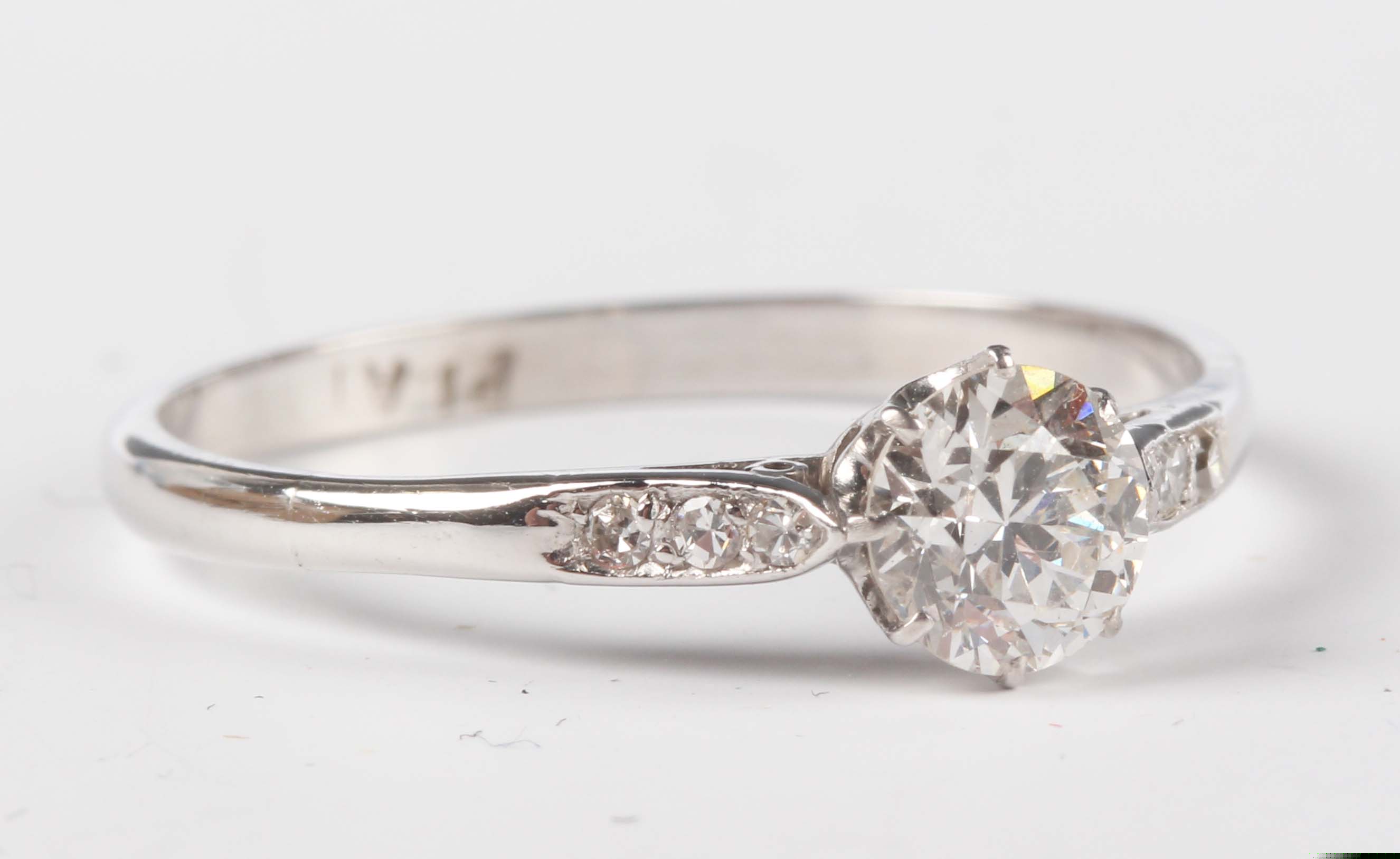 A platinum and diamond ring, claw set with the principal circular cut diamond between diamond three stone shoulders, detailed ‘Plat’, weight 2.9g, ring size approx S.