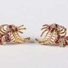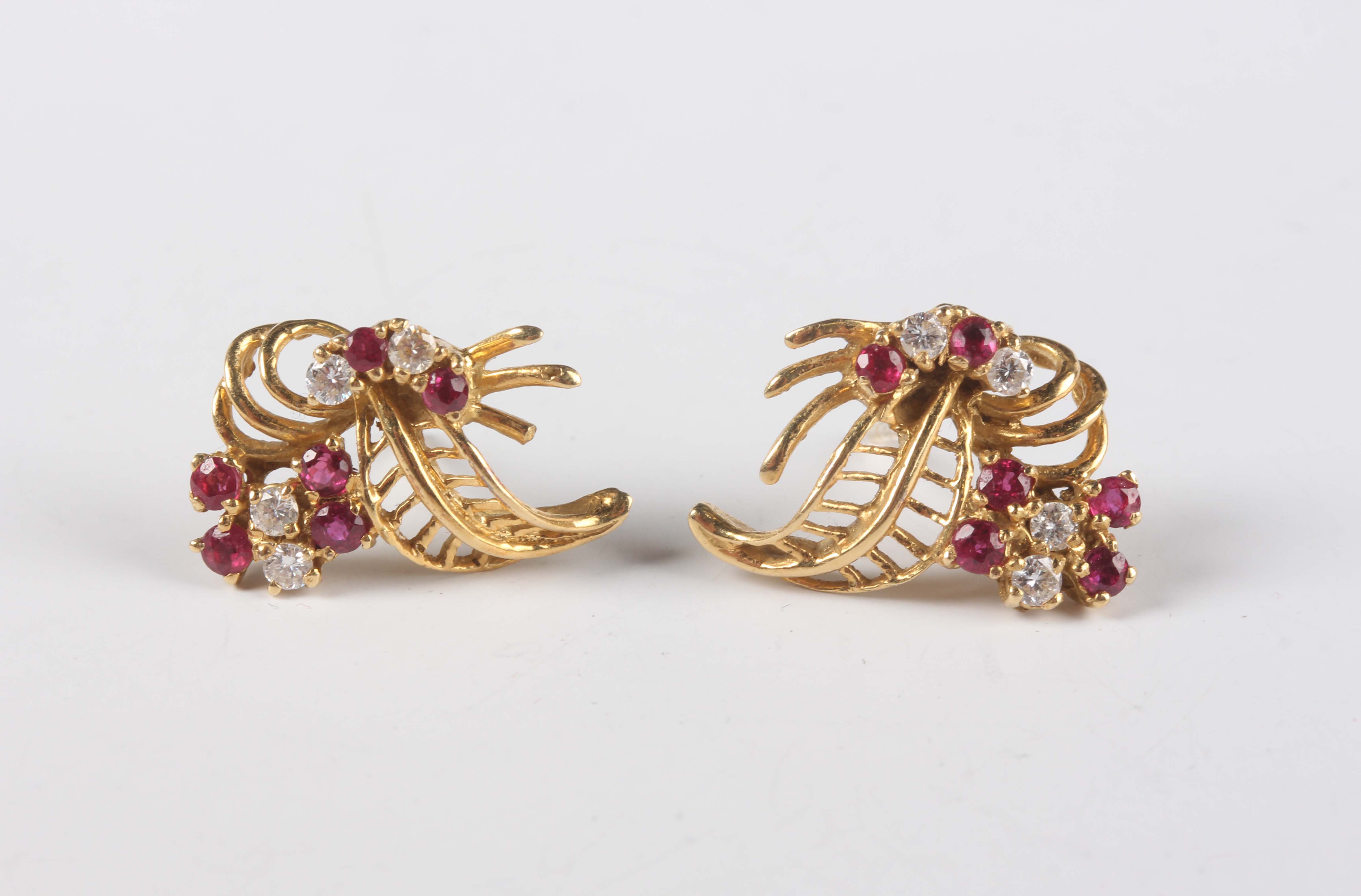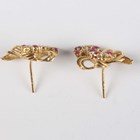 A pair of 18ct gold, ruby and diamond earstuds in a foliate pierced design, with post fittings, London 1987, weight 4.6g, with two 9ct gold differing butterflies.