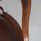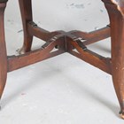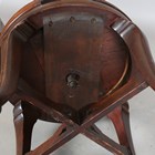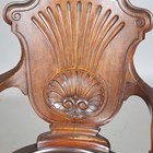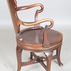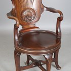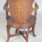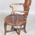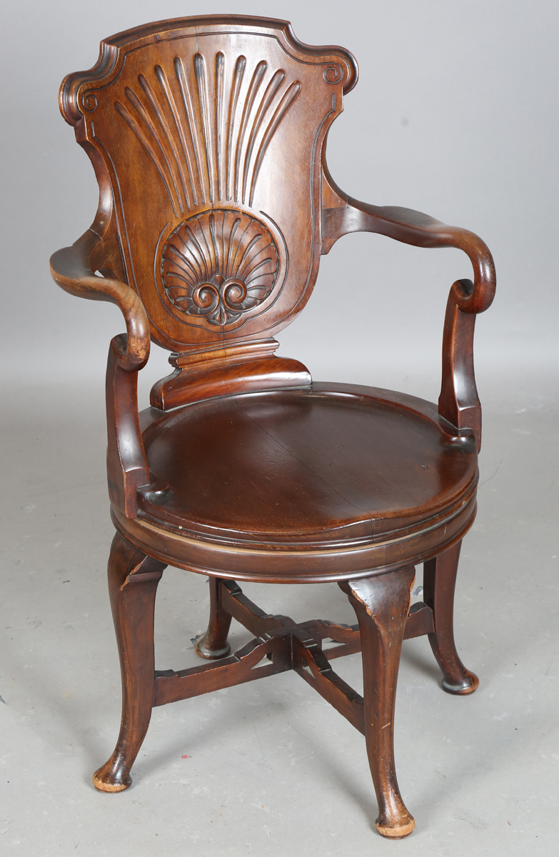 An Edwardian mahogany revolving desk chair with a carved cartouche back and shaped panel seat, on cabriole legs, height 95cm, width 56cm.