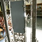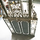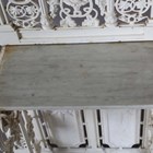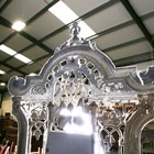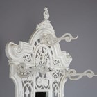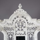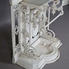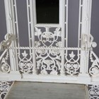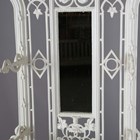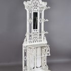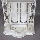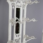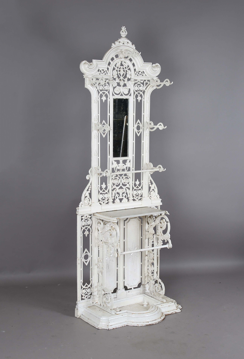 A late Victorian white painted cast iron hallstand by Coalbrookdale, the mirrored panel back fitted with coat hooks above a marble panel and stick stand, bearing lozenge registration marks to rear and base of drip pan, height 207cm, width 77cm (lacking section of trim on front).