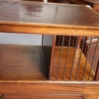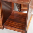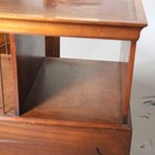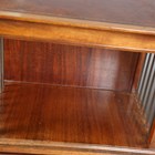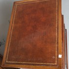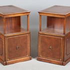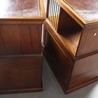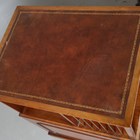 A pair of late 20th century George III style mahogany library step bookcases, inset with gilt-tooled brown leather and fitted with bookshelves, height 71cm, width 42cm, depth 56cm.