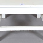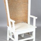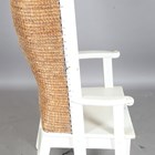 A 20th century white painted softwood Orkney armchair with typical woven straw back, height 105cm, width 61cm, depth 57cm (some faults).