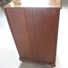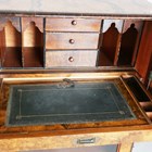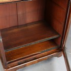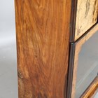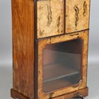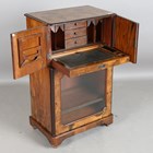 An unusual mid-Victorian walnut secrétaire music cabinet, the two doors enclosing a letter rack and pull-out writing surface above a single glazed door, height 101cm, width 61cm, depth 39cm.