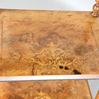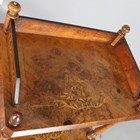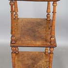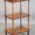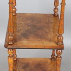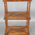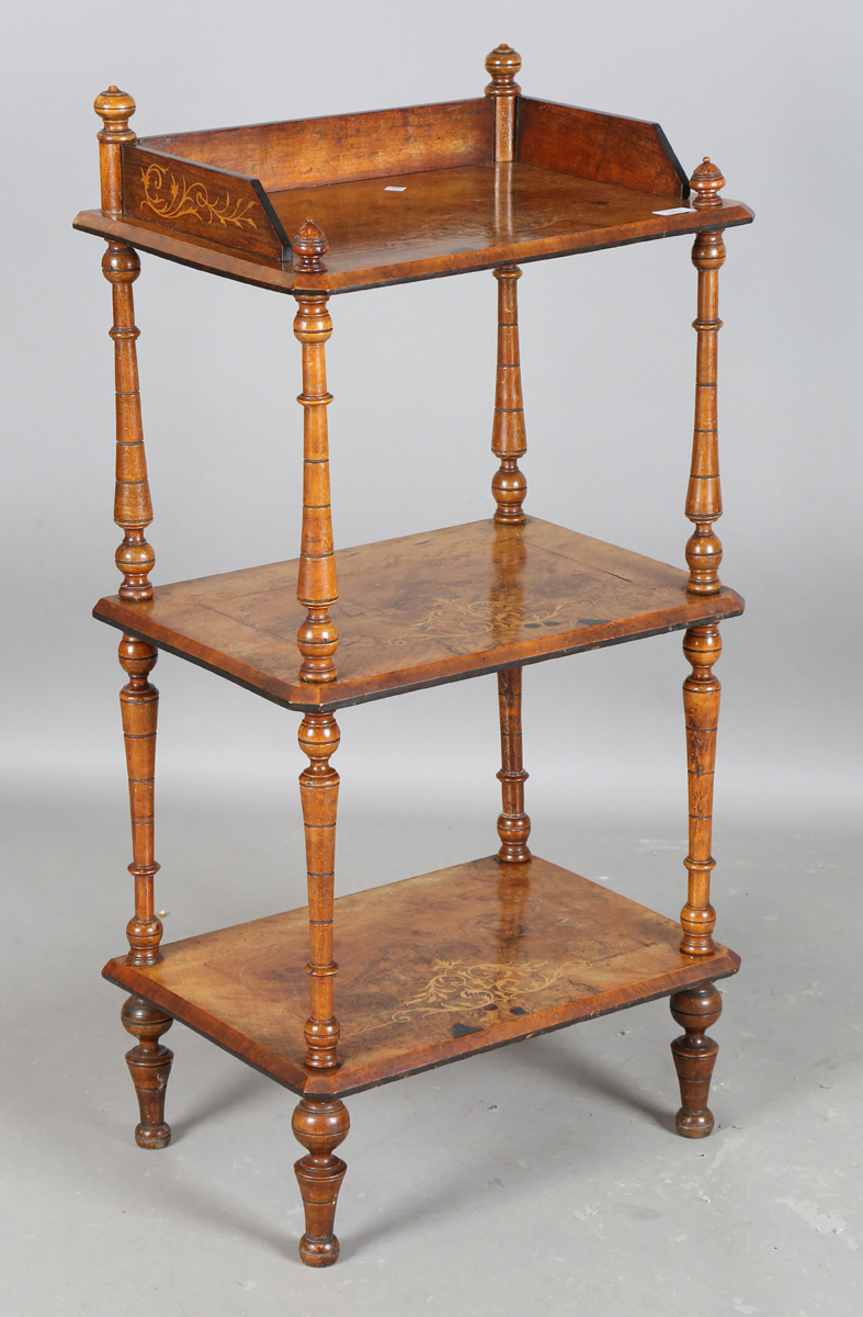 A late Victorian walnut and foliate inlaid three-tier whatnot, height 105cm, width 53cm, depth 37cm.