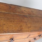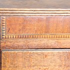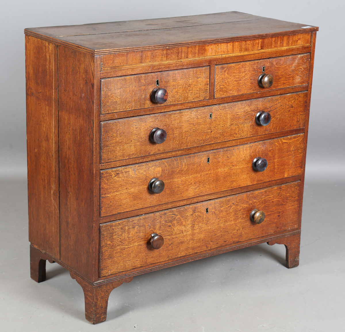 An early Victorian provincial oak chest of drawers with chevron banded frieze, height 100cm, width 101.5cm, depth 50cm.