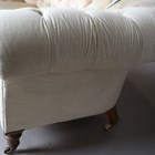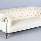 A late Victorian button-back Chesterfield settee, on ring turned walnut legs, height 70cm, width 188cm, depth 84cm.
