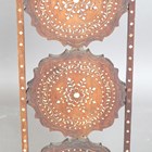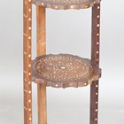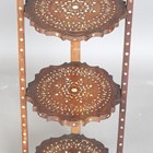 An early 20th century Indian hardwood and bone inlaid three-tier folding cakestand, height 80cm, width 25cm.