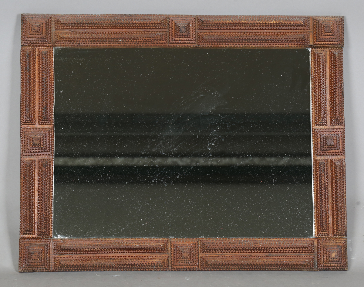 A late 19th/early 20th century Tramp Art rectangular wall mirror, 70cm x 55cm.
