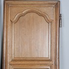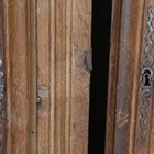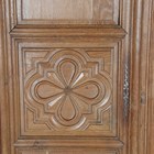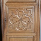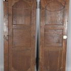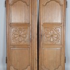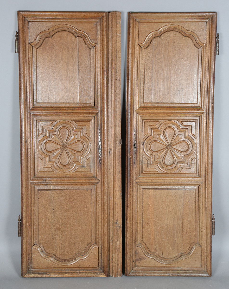 A pair of 19th century French oak armoire doors with central carved rosette panels, height 170cm, total width 121cm.