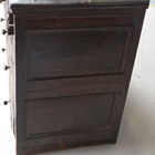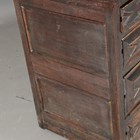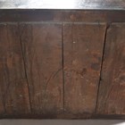 A William and Mary oak chest of four drawers, all with applied geometric mouldings, height 90cm, width 107cm, depth 56cm (alterations and faults).