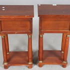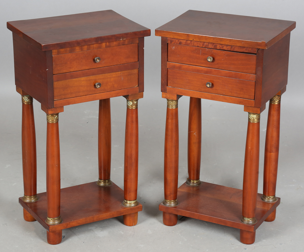 A pair of late 20th century French Empire style hardwood bedside tables with gilt metal mounts, height 65cm, width 35cm, depth 26cm.