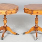 A pair of late 20th century yew octagonal occasional tables, each fitted with a single drawer, height 59cm, width 50cm.