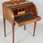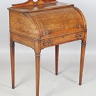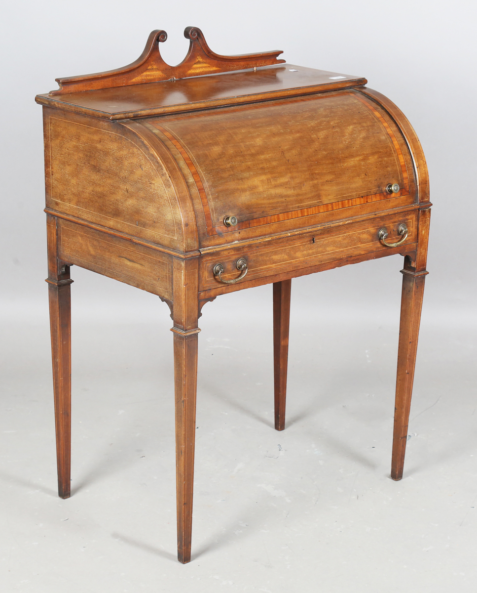 An Edwardian Neoclassical Revival mahogany cylinder roll-top bureau, enclosing a slide-out writing surface above a drawer, height 105cm, width 73cm, depth 48cm.