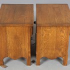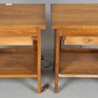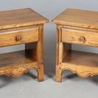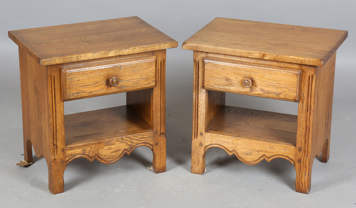 A pair of late 20th century French oak bedside tables, height 51cm, width 50cm, depth 35cm.