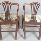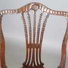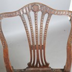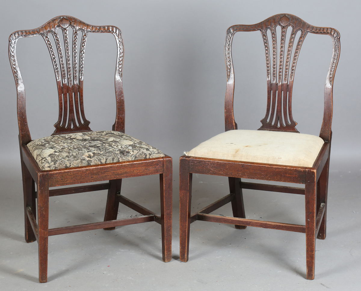 A pair of George III mahogany dining chairs with carved shell top rails and pierced splat backs, height 94cm, width 55cm.