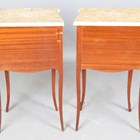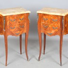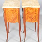 A pair of late 20th century French kingwood and floral marquetry marble-topped bedside chests with gilt metal mounts, height 73cm, width 44cm, depth 31cm.