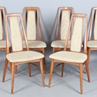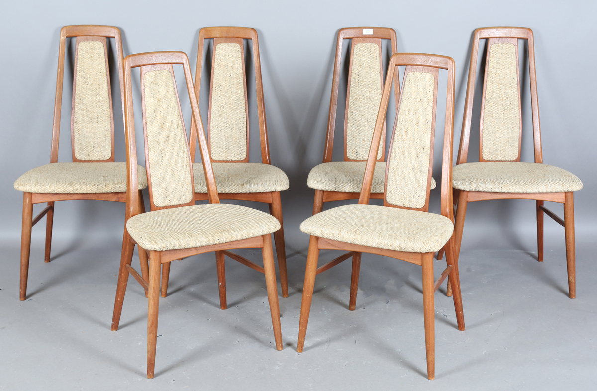 A set of six mid-20th century teak framed dining chairs by Niels Koefoed, height 97cm, width 48cm.