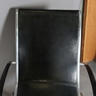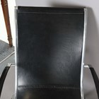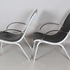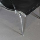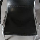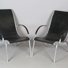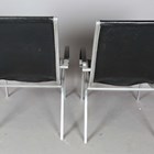A pair of 20th century aluminium framed and black leather armchairs with stitched seams, in the manner of Rudolf Szedleczky, height 94cm, width 64cm, depth 88cm.