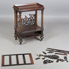A mid-Victorian rosewood and parcel gilt Canterbury, the galleried top above fluted supports and carved legs, height 69cm, width 49cm, depth 32cm (substantial faults).