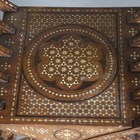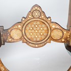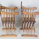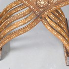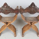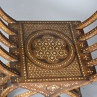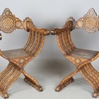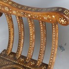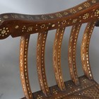 A pair of late 19th century Middle Eastern walnut and bone inlaid armchairs with shaped panel backs and 'X' framed supports, height 100cm, width 71cm, depth 52cm.