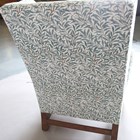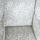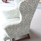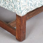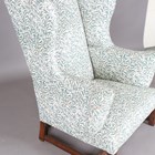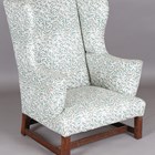 A George III oak framed wing back armchair, upholstered in modern foliate patterned fabric, on block legs, height 98cm, width 79cm, depth 75cm (cut down legs).