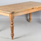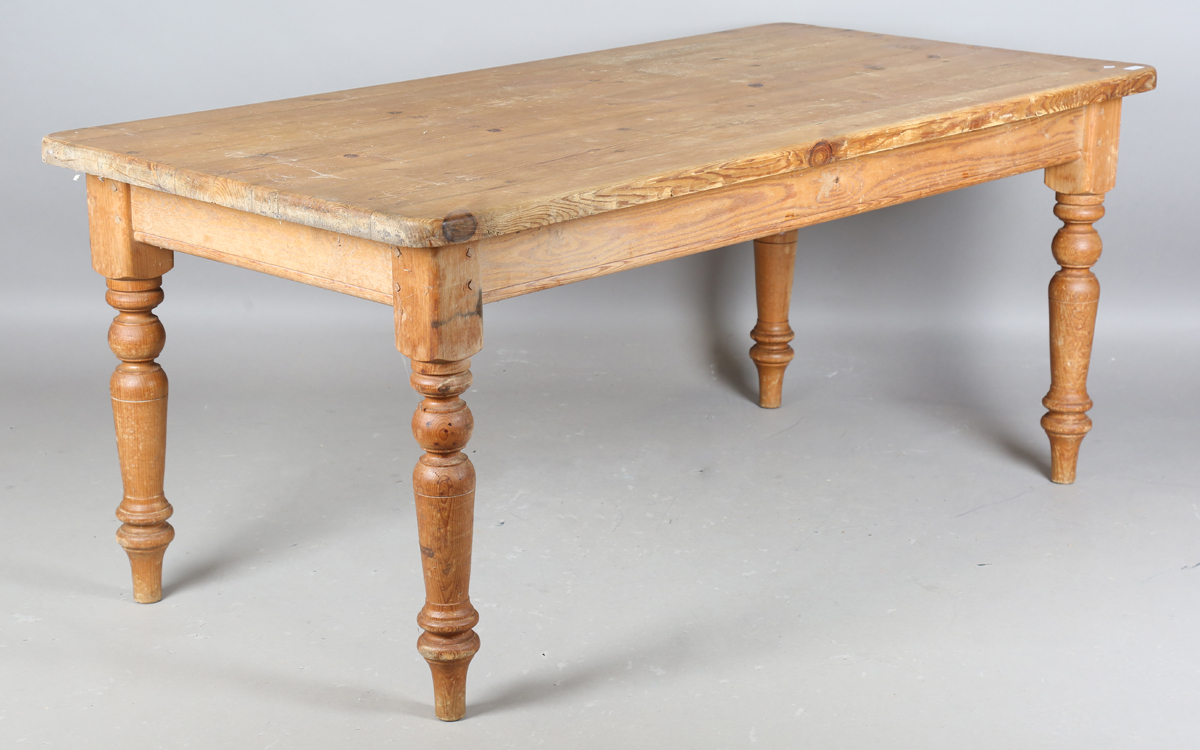 A 20th century pine rectangular kitchen table, on turned legs, height 78cm, length 182cm, depth 90cm.