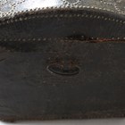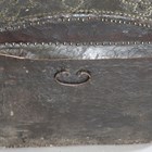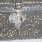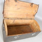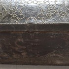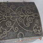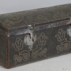 An 18th century Dutch leather-covered dome-topped trunk, decorated with brass studded tulips and scrolls, fitted with double locks to the front, height 50cm, width 112cm, depth 52cm.