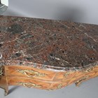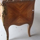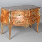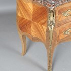 A 20th century French Louis XV style kingwood three-drawer commode with a shaped marble top and gilt metal mounts, height 84cm, width 120cm, depth 55cm.