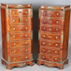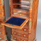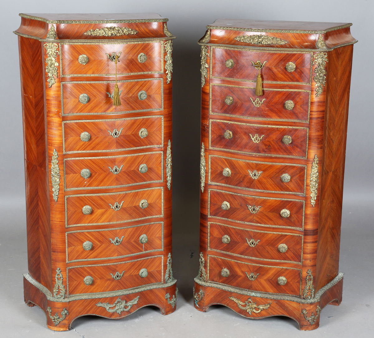 A pair of early 20th century French kingwood and gilt metal mounted semainiers, one fitted with a fall-front secrétaire compartment, height 123cm, width 63cm, depth 35cm (the secrétaire is slightly shorter than the other semainier).