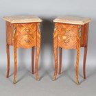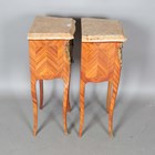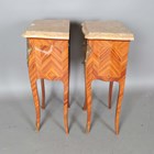 A pair of late 20th century French kingwood and marble-topped bedside chests of two drawers, height 73cm, width 41cm, depth 28cm.