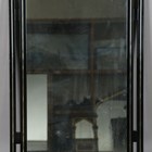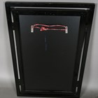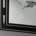 A late 20th century black lacquered and brass line inlaid wall mirror by Pierre Vandel, Paris, 89cm x 60cm.