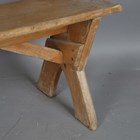 An early 20th century Continental pine bench with 'X' frame supports, height 78cm, width 167cm, height 78cm.