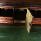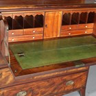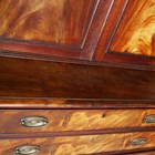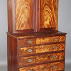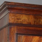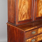 A late George III figured mahogany secretaire bookcase, the two panelled doors enclosing adjustable shelves above a secrétaire drawer and three further oak-lined drawers, height 202cm, width 99cm, depth 51cm.