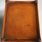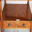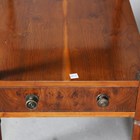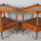 A pair of late 20th century reproduction yew lamp or bedside tables with leather inset tops and oak-lined drawers, height 56cm, width 38cm, depth 48.5cm.