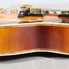 An R.W. Holman left-handed hollow body electric guitar, bearing interior label detailed 'R.W. Holman Architectural Woodworkers and Cabinet Makers, Seven Oaks, Kent, Number 94/5/SCA I', the body with mother-of-pearl inlaid edging, within its hard case, together with a Blackstar amplifier.