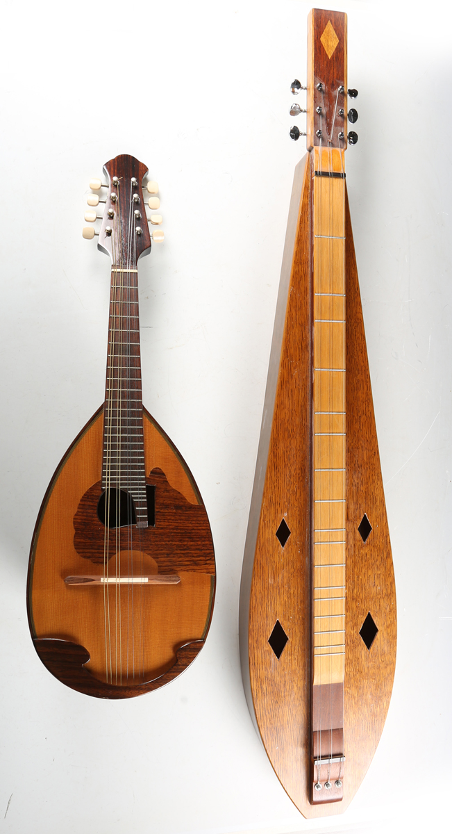 A Japanese mandolin by Kunishima, together with a dulcimer, both with soft cases, previously owned by Sir Cliff Richard, together with a signed letter of authenticity and other related paperwork.