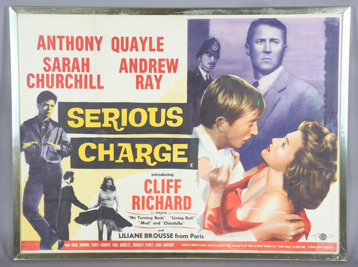 A colour printed film poster for 'Serious Charge', the film including Cliff Richard, 74cm x 100cm, framed.