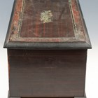 A late Victorian Swiss music box, the lever-wind mechanism playing ten airs on a 15cm cylinder and three bells, the tune sheet and movement numbered '12785', width of case 46.5cm.