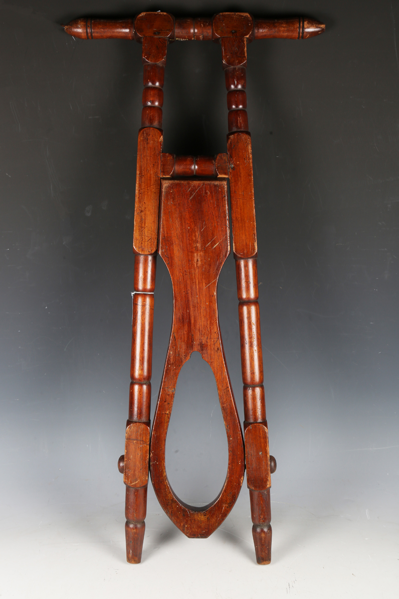 A late Victorian walnut folding boot pull, length 84cm.
