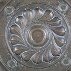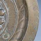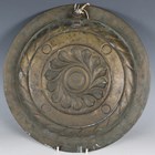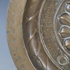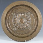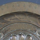A 16th/17th century Nuremberg brass alms dish, the central raised boss within a band of script and four tondo portraits, diameter 35.5cm.