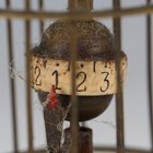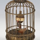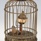 A late 20th century brass bird automaton timepiece, fitted within a cage, height 14.5cm (defective).