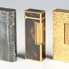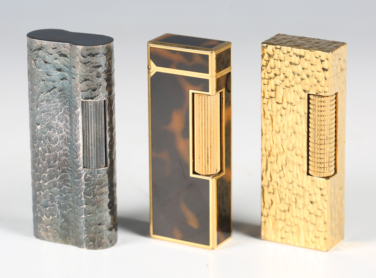 A Dunhill gilt metal pocket lighter, length 6.4cm, together with two other Dunhill lighters.