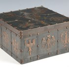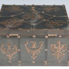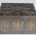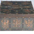A mid-20th century Polish Medieval Revival copper mounted box, embossed with overall Polish White Eagles, width 25cm.
