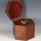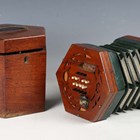A late 19th century thirty-two button accordion, possibly by Wheatstone, boxed.