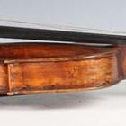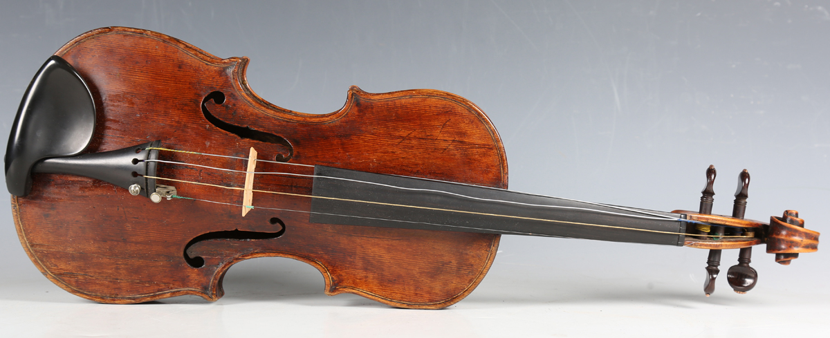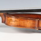 A violin bearing interior label detailed 'Thomas Bale...?...', length of back excluding button 36cm, together with a bow, branded '...Mirecourt', cased.