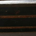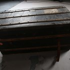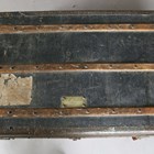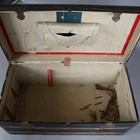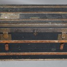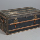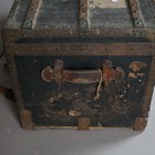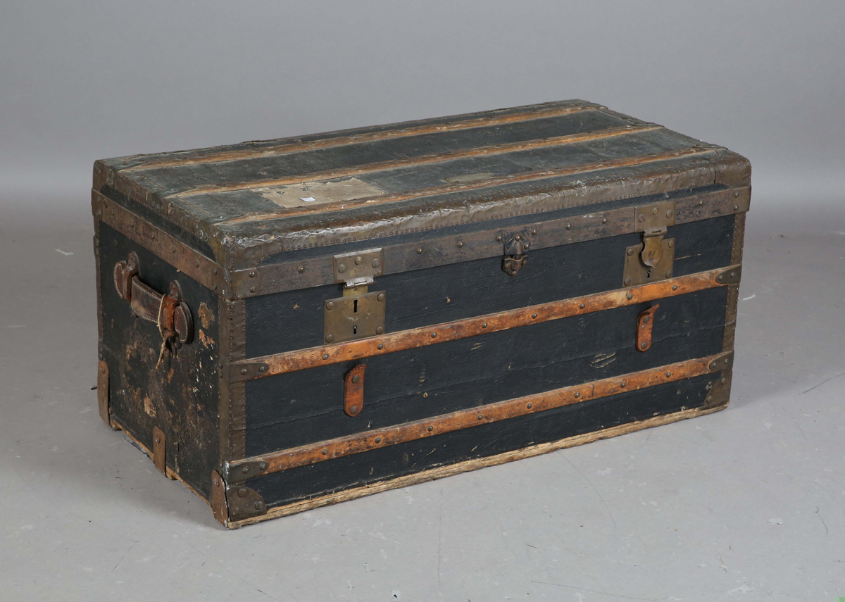 A late 19th century black canvas and wooden bound travelling trunk, width 92cm.