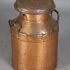 A mid-20th century copper Daw's Creameries of Totnes milk churn, height 51cm.