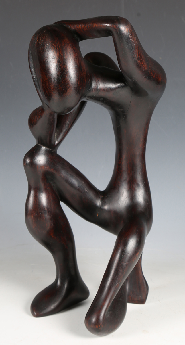 A 20th century African carved hardwood abstract kneeling figure, height 50cm.
